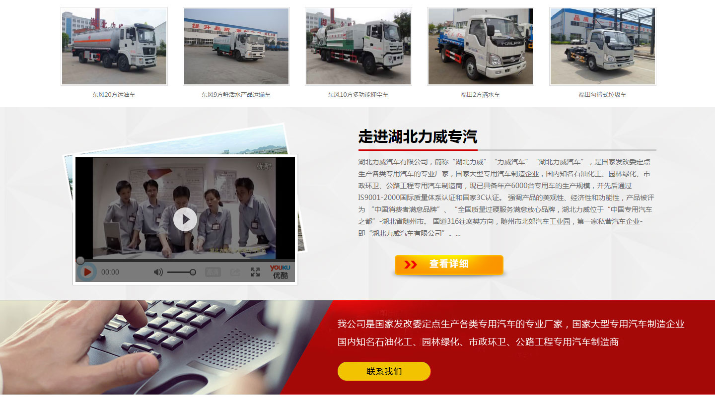 簡介:湖北力威汽車有限公司,簡稱“湖北力威”“力威汽車”“湖北力威汽車”,是國家發改委定點生產各類專用汽車的專業廠家,國家大型專用汽車制造企業,國內知名石油化工、園林綠化、市政環衛、公路工程專用汽車制造商,現已具備年產6000臺專用車的生產規模,并先后通過IS9001-2000國際質量體系認證和國家3C認證。